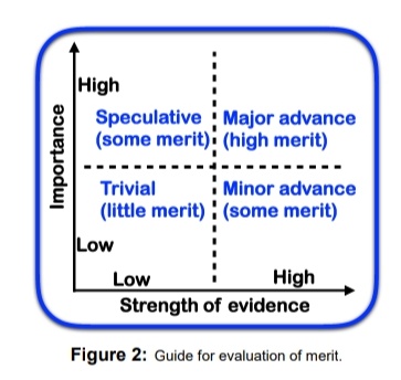 The other axis, 'strength of evidence', is also subjective, and subject to much gatekeeping. All of us experience times when reviewer 1 says a study is brilliant & well-designed, but reviewer 2 lists a dozen 'missing' experiments.